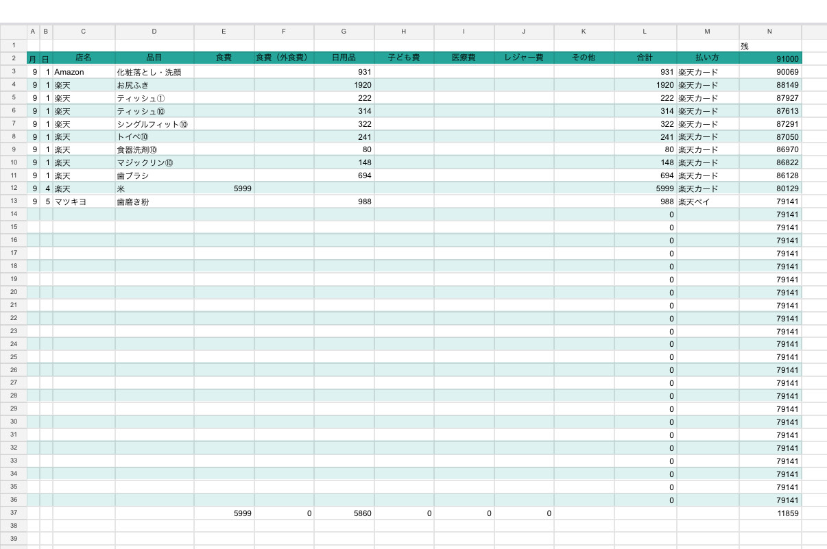 月毎に下のような管理をして、それぞれの予算内で管理してきました。