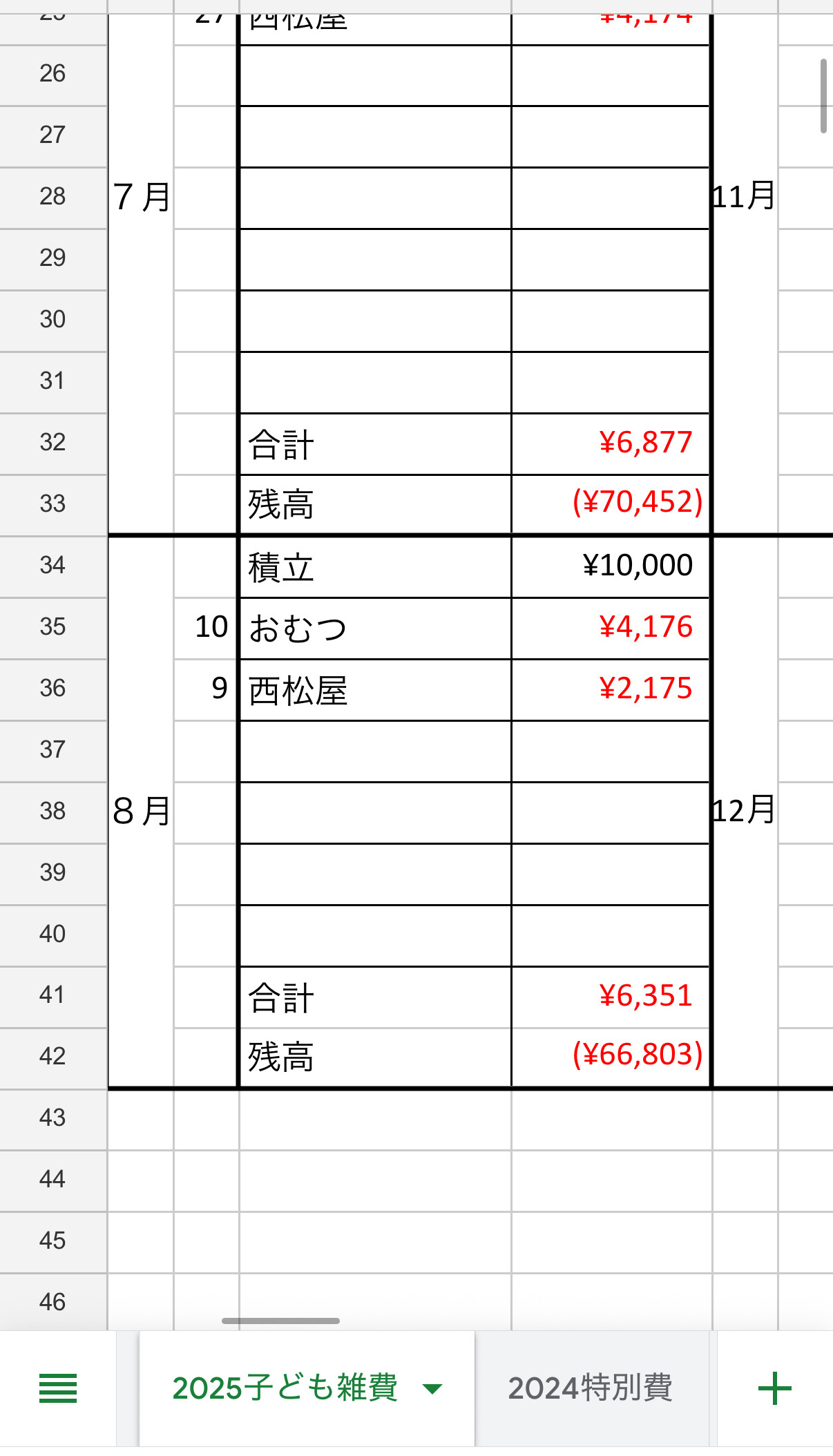また、これまで毎月15,000円ずつ積み立てていた「特別費(誕生日やイベントなど)」についても見直し予定です。