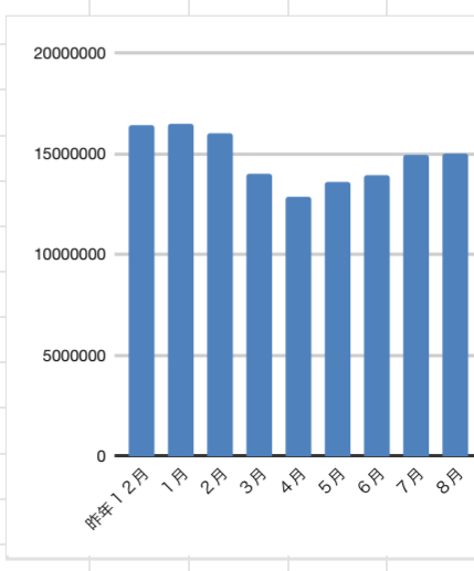 7月の 14,958,016円 からは わずかにプラス。微増ながらも前向きな結果です。