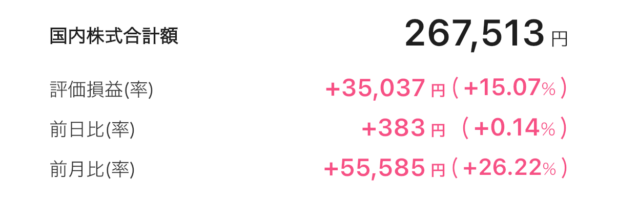 • 国内株式合計額:267,513円